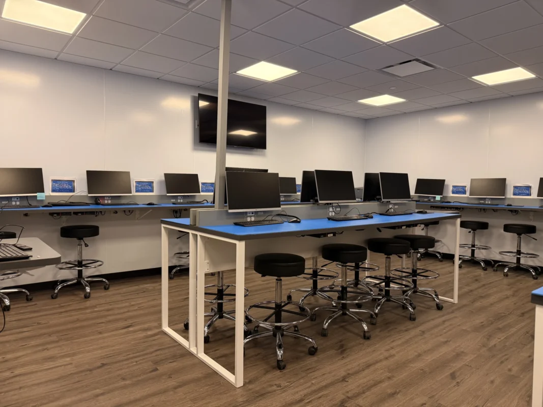 Salles de classe et laboratoires aménagés par programme et notamment pour la formation en santé, assistance et soins infirmiers